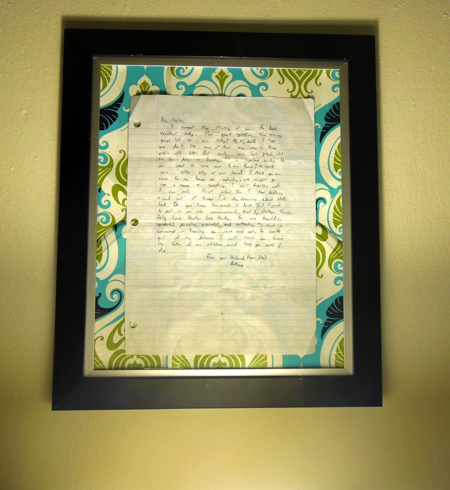 drama stuff that was happening in our lives at that time. I'm really enjoying all the new design stuff I've been doing to our bedroom, but I wanted it to be a personal little space for the hubby and I to go to at the end of a long day. So I decided to frame some of our love notes.